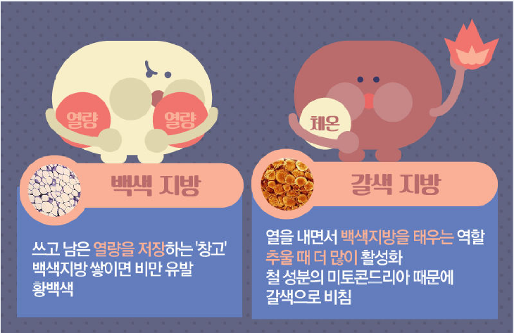 갈색 지방은 일반 지방과 달리 에너지를 저장하지 않고 소모하는 역할을 해 다이어트에 효과적인 요소로 알려져 있습니다.